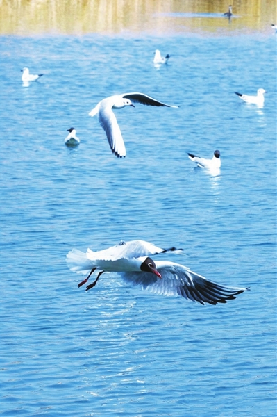 当我夜晚归家写下这段文字时,才发现小腿和后背都极度困乏。是呀!沉醉春色的一天,流连红嘴鸥的一日,午饭就是和摄影朋友一起啃面包草草打发的。但,身心愉悦!电脑屏幕出现最后一字时,我心生一约:下周末,要和妻子共赴这场“鸥”式浪漫。
