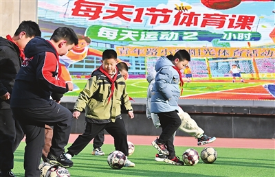 这学期起,青年路小学的体育课增加了旱地冰球和足球两个项目,丰富了孩子们的运动内容;学校的地方课程和综合实践课改为体育活动课,由老师带领学生进行跳绳、踢毽子等活动。以前,一至二年级每周有4节体育课,三至六年级每周有3节体育课,现在,所有年级体育课调整为每天一节,确保学生每天运动不低于2小时。