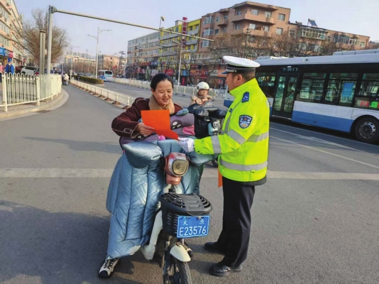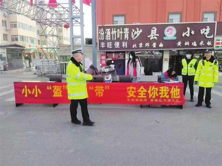 为进一步提升电动自行车骑乘人员的安全防护意识,从源头减少道路交通事故隐患,太原交警积极探索交通安全管理新模式,不仅上路积极宣传“一盔一带”的重要性,还在执勤点设立电动自行车“一盔一带”教育点,督促未佩戴安全头盔的电动自行车驾驶员通过看视频、写交规的方式深入学习“一盔一带”知识。