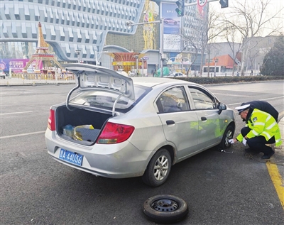 近日,交警综改大队五中队民警在坞城南路龙盛街口执勤时发现,一辆银灰色小型轿车右前轮爆胎,困在原地无法动弹。此时该路段车流量较大,执勤民警立即上前询问情况,经询问得知该车辆在行驶过程中突然爆胎,导致无法行驶。为确保道路正常通行,防范交通事故,民警在车后方做好安全措施,随即拿起工具,熟练地帮助驾驶人更换起了备胎。备胎顺利安装完毕后,民警叮嘱驾驶人备用轮胎不能长时间使用,应尽快找修理厂更换轮胎,确保行车安全,还细心检查了车辆状况,确保无误后,该车辆安全驶离现场。