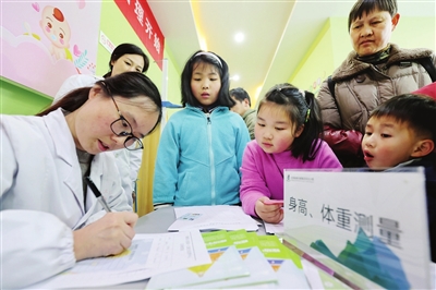 3月15日,在浙江省湖州市德清县洛舍镇卫生院,医护人员在登记儿童诊疗信息。当日,浙江省湖州市德清县洛舍镇卫生院儿童体重管理门诊正式运行。该门诊通过专业手段评估儿童肥胖程度及健康风险,结合个体生长发育特点定制干预方案,为每位就诊儿童建立专属健康档案,进行长期管理跟踪,守护儿童健康。新华社发 (谢尚国 摄)