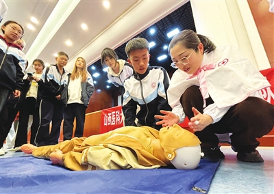 三月十八日,山西医科大学第二医院西院区医护人员来到山西经济干部管理学院开展送健康活动,通过健康讲座、义诊、急救培训等形式,提高师生健康意识。邓寅明 摄