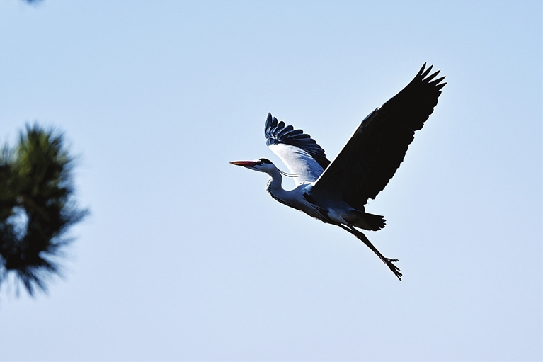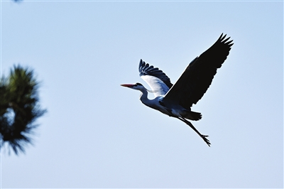 3月19日,在山西省方山县积翠镇,苍鹭在空中飞翔。
