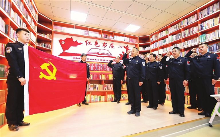 3月20日上午,山西出入境边防检查总站执勤四队党支部联合太原第二监狱教育改造科党支部开展主题活动,民警们互相交流畅谈体会,一起重温入党誓词。米国伟 杨 君 马延超 摄影报道