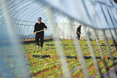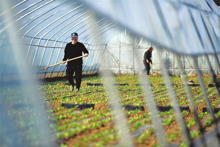 3月26日,小店区西草寨村菜农樊福保正在打理刚刚栽种的娃娃菜。当地农民抢抓农时,科学种植,有序推进春耕春管。韩双喜 摄