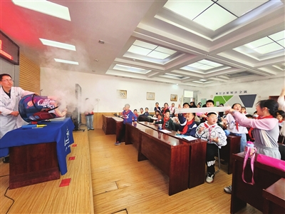 3月25日,迎泽区科协、庙前街社区在三晋小学联合举办科普活动进校园活动。“空气炮”“液氮薯条”等实验让孩子们感受到科技魅力。张澍宏 摄