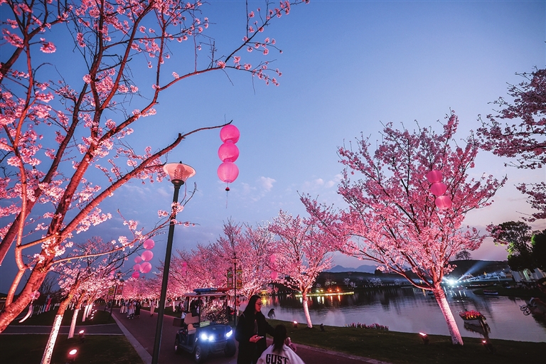 进入三月,位于浙江省金华市武义县王宅镇的花田美地景区春花盛开,景区开启春日花朝节,举行春日赏花、烟花表演、非遗手作等主题活动。花田美地景区是金华市武义县王宅镇的特色乡村旅游项目,依托茶山、花海、河塘打造四季田园美景,也带动了周边乡村百姓的就业。新华社记者 徐 昱 摄