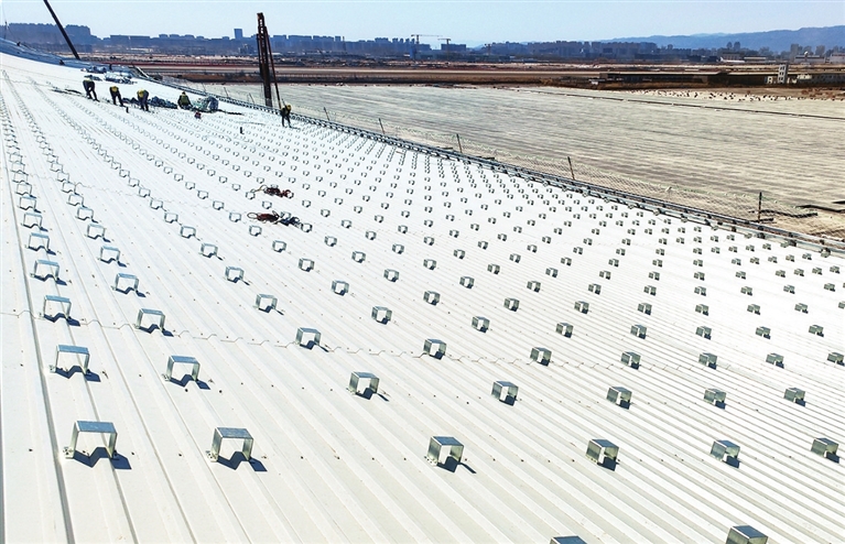 项目部精心策划、科学组织,以满腔的工作热情,奋力吹响春季大干“集结号”,全力以赴向5月31日前完成金属屋面闭水目标迈进。截至目前,东指廊D3区檩条安装工作已全部完工,并完成调整验收工作,屋面底板已完成95%;D2区檩条安装完成10%,并有序实施D3区隔气层、防水层施工。(梁 丹)