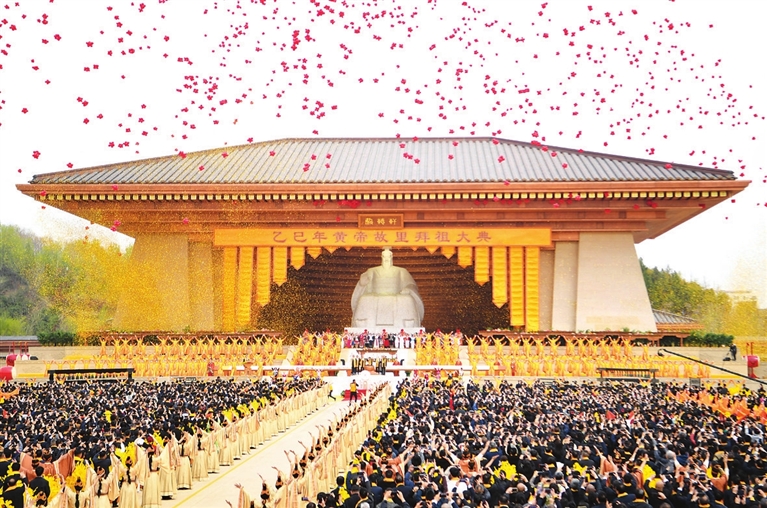3月31日拍摄的乙巳年黄帝故里拜祖大典现场。当日是农历三月初三,乙巳年黄帝故里拜祖大典在河南新郑举行。大典的主题为“同根同祖同源,和平和睦和谐”,来自海内外的华夏儿女汇聚在这里,共拜轩辕黄帝,祈福祖国繁荣昌盛,祝愿世界和平和睦。新华社记者 郝 源 摄