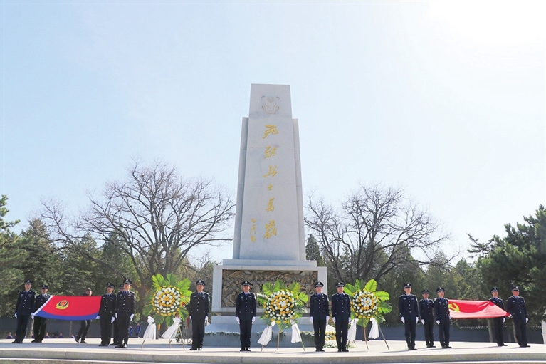 近日,太原市公安迎泽分局组织民警、辅警在牛驼寨烈士陵园开展清明祭扫活动,缅怀英烈。郭苑甫 杨宇雨 摄影报道
