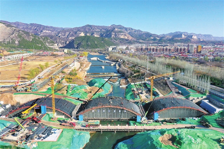 省城幸福桥建设进展顺利,桥体雏形已现。该桥梁建成后,将实现老龙头区域周边与河东区域的有效衔接,为市民提供便利的通行环境。 图为4月4日幸福桥施工现场。王韵菲 摄
