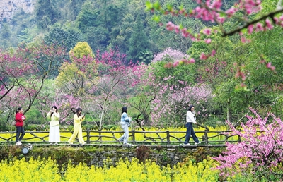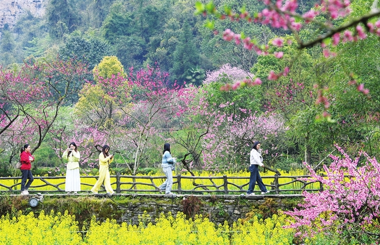 上图:4月4日,游客在重庆市酉阳土家族苗族自治县桃花源景区踏青赏花。