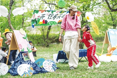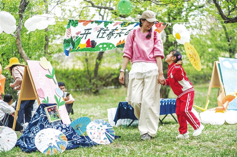 清明假期,人们来到户外踏青、赏花,感受美好春光。