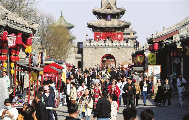 4月6日,太原古县城内游客络绎不绝。目前,景区推出了古风游园、趣味游戏、互动演艺和沉浸式游览网红景点等一系列活动。牛利敏 摄