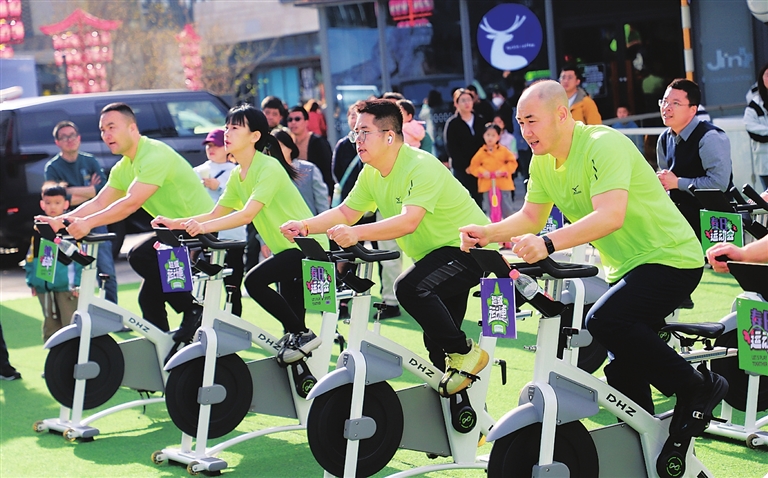 四月五日,共青团晋源区委在晋阳里·中心广场举办春日运动会,音乐飞轮、随机舞蹈、哑铃健身操等内容丰富,形式新颖,吸引众多青年朋友参与体验。张昊宇 摄