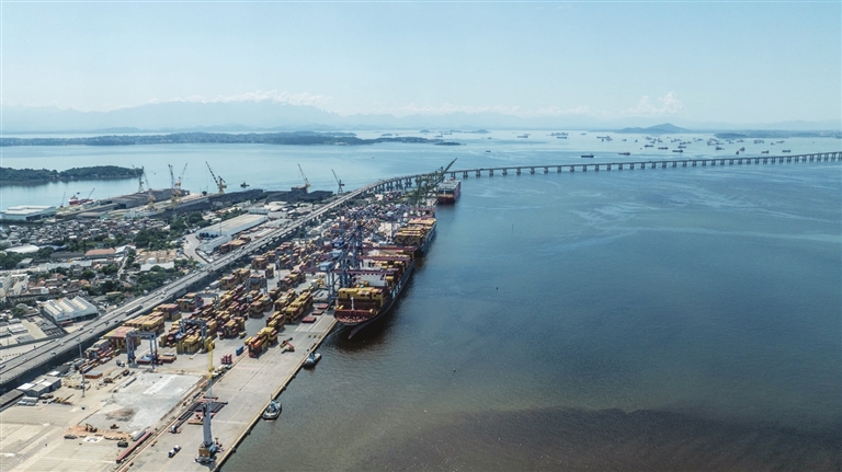 这是4月3日在巴西里约热内卢拍摄的一处港口(无人机照片)。新华社记者 王天聪 摄