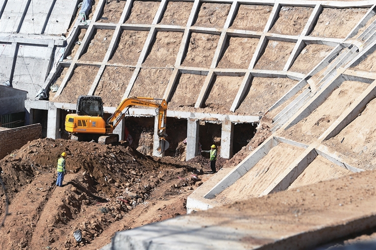 4月7日,杏花岭区中涧河镇牛驼村,工程机械在进行作业。为预防山体滑坡等地质灾害的发生,规资部门对该村风险区域进行混凝土加固。牛利敏 郝晨光 摄影报道