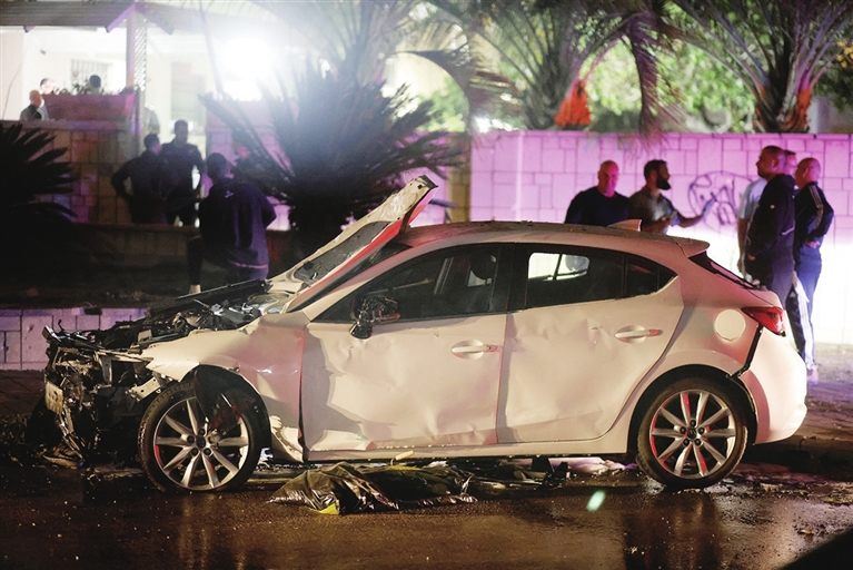 这是4月6日在以色列南部城市阿什凯隆拍摄的损毁汽车。新华社发