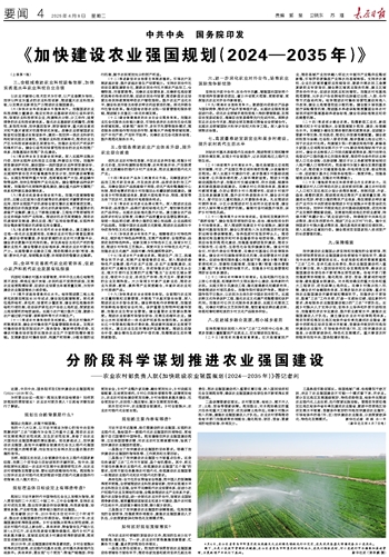 ~~~——农业农村部负责人就《加快建设农业强国规划(2024—2035年)》答记者问