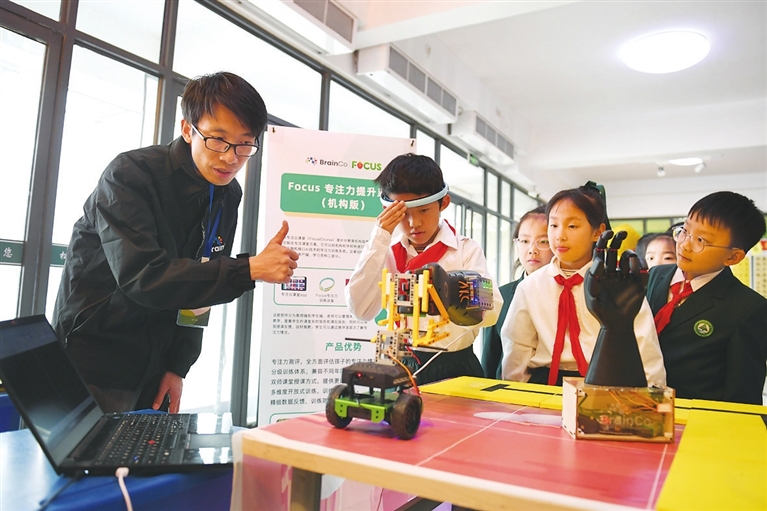 4月11日,迎泽区松侨小学举行“科学进校园”主题活动。学生通过沉浸式体验脑控赛车、机械手抓取等交互项目,增进对前沿科学的了解,促进专注力的培养。牛利敏 摄