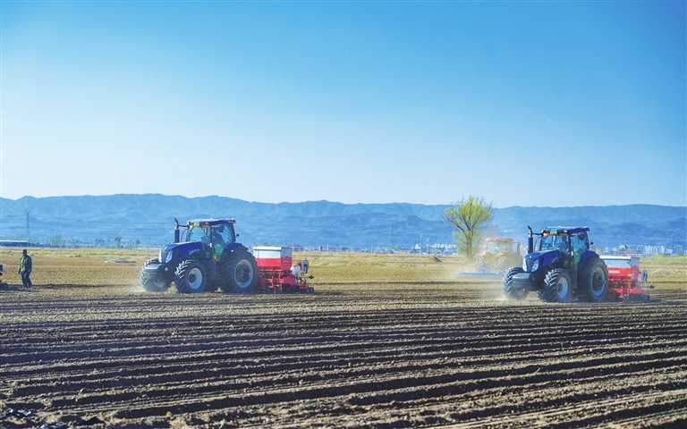 4月16日,在清徐县孟封镇西堡村,智能化播种机、旋耕机“列阵”田间,翻起肥沃的泥浪。近年来,省农机公司将一大批智能化、绿色化的农机装备陆续投入生产一线,助力春耕。米国伟 耿婧媛 摄影报道