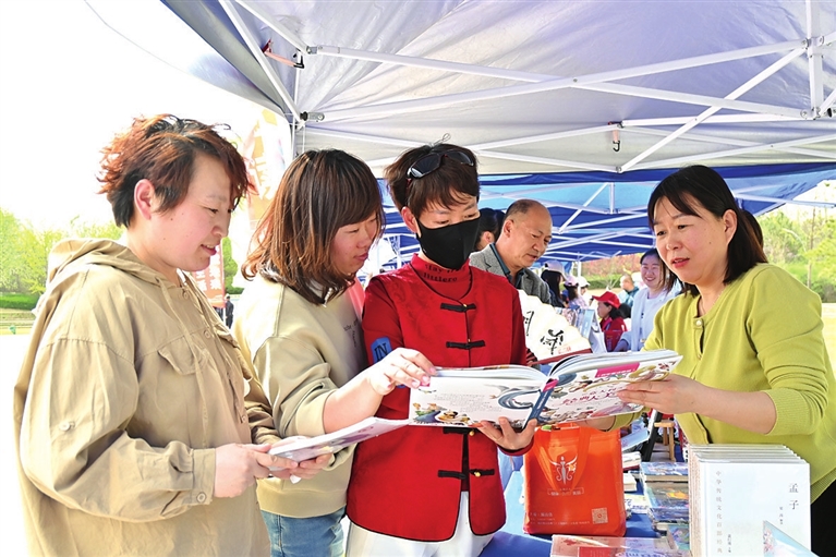 四月十六日,万柏林区“非遗市集”暨深化全民阅读 共建书香社会文明实践主题活动在和平公园西广场举行。郭苑甫 摄