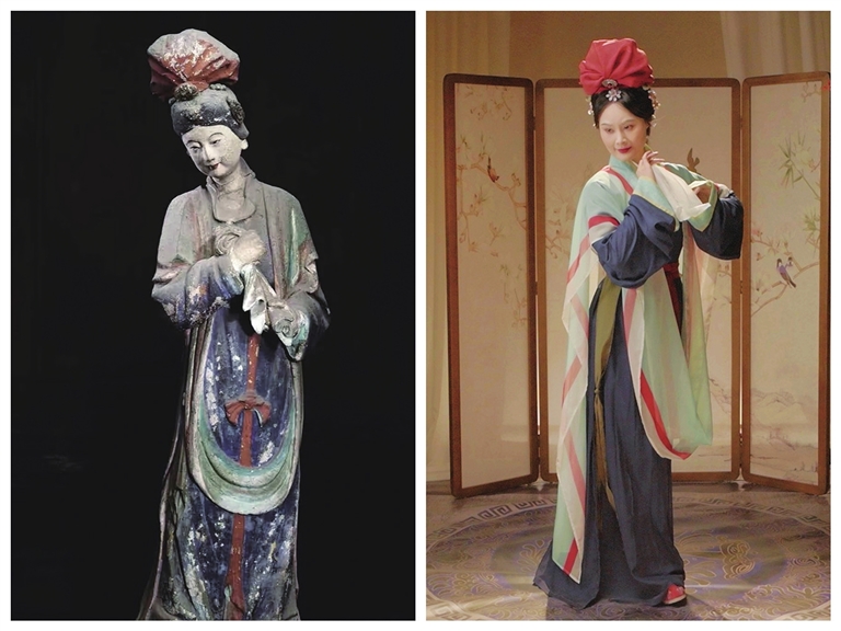 报道介绍道,在节目中,观众将跟随嘉宾的脚步,沉浸式体验两尊文物的装束复原过程。从敷粉、施朱、描眉、点唇,到梳理发髻、搭配首饰、着装搭配,每一个步骤都严谨细致,力求还原古代妆容的独特韵味。在复原宋代侍女妆容时,深入探究梅兰芳先生与这尊塑像的不解之缘,感受“一颦一笑,似诉生平”的独特魅力;在复原元代乐伎妆容时,结合元代的历史文化背景,展现元代妆容和服饰的独特风格。(李晓并)