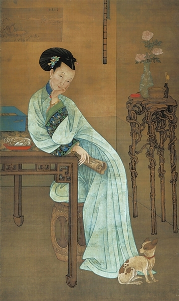 清代画家在呈现女性观书之态时,倾向于运用精细的描绘来呈现其内涵深意。在《春闺倦读图》中,冷枚便精妙地呈现了女子手中的书籍。尽管部分字迹被女子的手部所遮掩,但观者仍能从中捕捉到关键信息,进而辨识出此书为《子夜歌》。
