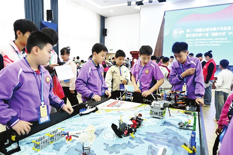4月19日,由市科学技术协会、市教育局联合主办的第二十四届太原市青少年机器人竞赛暨太原市第十届“创新未来”中小学生机器人竞赛活动在成成中学晋源校区举行。张昊宇 摄