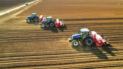 你听,这片希望的田野上,“突突”作响的不只是农机,还有乡村振兴的强劲心跳。神农集团的展销厅内,目光灼灼的农户争先恐后地咨询着新型播种机;农机驾校里人头攒动,机械声混合着雀跃的欢呼;农资商店的货架早已备足春的期待,人们吆喝着新的希望;化肥堆成的小山前,劳动号子折射着土地深处的渴望;乡野路上,电商物流车的鸣笛声与农机的轰鸣声在上空汇合……农业不再只是面朝黄土的艰辛叙事,更绘就了融合物联网、生物技术、数字经济的立体画卷。