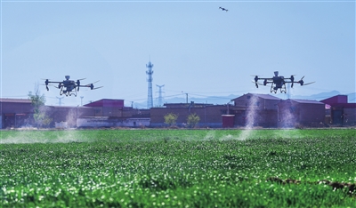 清徐的广袤农田里,红蓝相间的“铁牛”在北斗导航的指挥下穿梭,一条条精准的几何线里,生出一垄垄希望;杨房村的玻璃温室内,数字园丁24小时监控着空气湿度与光照强度,传感器代替了老农布满老茧的手,轻抚着每一株作物的生长曲线;植保无人机掠过田地,螺旋桨搅动的不仅是春风,更是农业现代化的时代回响……