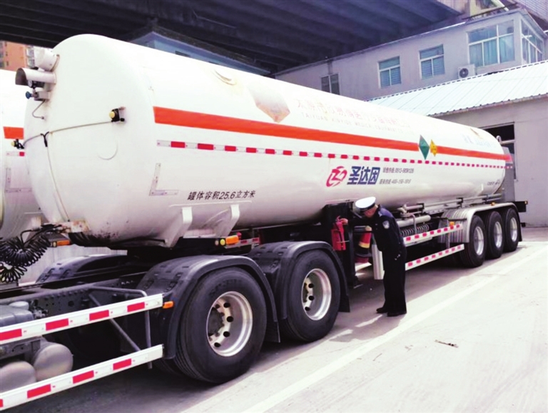 随后,民警查看了企业交通安全生产台账,逐一对车辆及驾驶人检验、审验以及违法记分等情况进行排查,要求企业负责人认真落实好安全主体责任,强化管理,切实抓好日常交通安全教育培训工作,坚决杜绝“病车上路”“病员”驾车的情况出现,对发现的问题及时做好督促整改。最后,警力对企业车辆的安全设施、车辆轮胎的磨损情况、灭火器等进行检查,进一步夯实危化品运输安全之基。