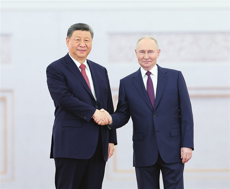普京表示,俄中关系建立在相互平等、相互尊重基础上,不针对第三方,不受一时一事影响。坚定不移推动俄中关系发展、扩大互利合作是俄方战略选择。俄方坚定奉行一个中国原则,在台湾问题上始终支持中方立场。俄方愿同中方保持密切高层交往,加强贸易、投资、能源、农业、科技等领域务实合作,深化教育、文化、青年、旅游等人文交流,拓展远东地区合作内涵。加征高关税违背常理,也不合法,只会反噬自身。双方要加强在联合国、上海合作组织、金砖国家等多边框架内的协调和配合,支持世界多极化进程,共同反对单边主义,反对滥施制裁,反对集团对抗,维护国际社会共同利益。