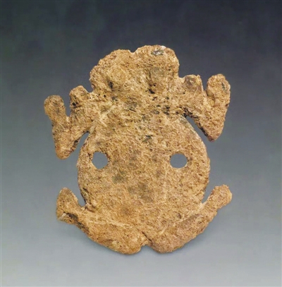2013年,考古工作者在陶寺遗址宫城东北角门遗址的发掘中,发现了这件长宽约10厘米的铜蟾蜍。它以红铜铸造,整体呈扁平蛙形,双目圆凸,四肢呈蹲踞状且向两侧张开,腹部中央对称分布两孔,仿佛蟾蜍蓄势捕食的瞬间。作为龙山文化“铜石并用”时期的代表器物,它的出土不仅刷新了学界对我国早期铜器铸造技术的认知,更以具象化的形态揭示了先民对自然生灵的深刻观察。
