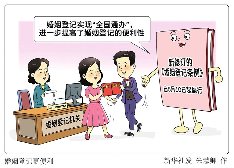 答:婚姻登记“全国通办”以后,内地居民申请结婚登记,男女双方只需要出具本人的居民身份证,本人无配偶以及与对方当事人没有直系血亲和三代以内旁系血亲关系的签字声明,不再需要出具户口簿。对当事人来说,需要出具的证件、证明材料精简了,办理婚姻登记更加便捷了。在证件齐备、材料准确、核查一致的基础上,婚姻登记机关将为双方办理婚姻登记。