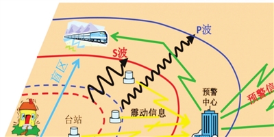 地震预警,是指在地震发生后,利用地震波传播速度小于电波传播速度的特点,提前对地震波尚未到达的地方进行预警,一般来说,地震波的传播速度是每秒几公里,而电波的速度为每秒30万公里。因此,地震预警技术能够利用实时监测台网获取的地震信息,对地震可能的破坏范围和程度快速得出评估结果,利用破坏性地震波到达之前的短暂时间发出预警。