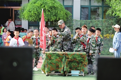 5月13日上午,迎泽区第三实验小学开展“军魂筑梦 迷彩飞扬”国防教育周活动,通过实践体验,厚植家国情怀。张昊宇 摄