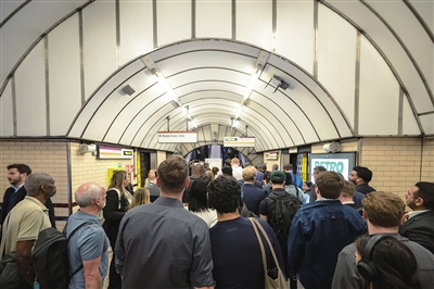 五月十二日,英国伦敦贝克街地铁站人群拥挤。英国伦敦交通局十二日在其官网上发布消息说,伦敦地铁当天发生停电,导致多条地铁线路停运或严重延误。新华社发(史蒂芬·程 摄)