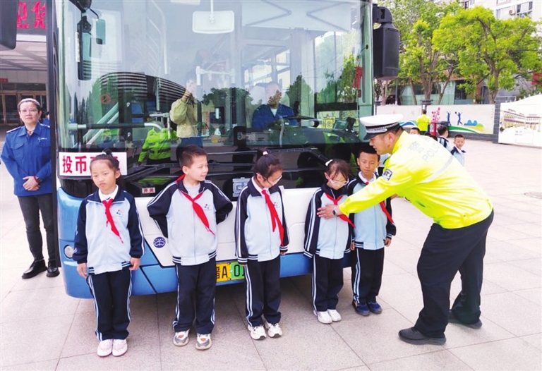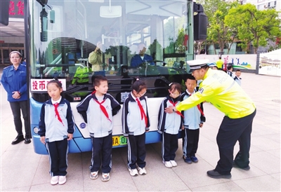 活动中,民警结合小学生的年龄和出行习惯及心理特点,通过提问的方式,让学生们了解和掌握坐车发生危险时应采取的防护措施和自救方法。同时,向学生讲解公交车的几大盲区和乘车注意事项等交通安全知识,以及关于不规范乘车的危害,并对不文明交通行为可能造成的危险向学生做了具体分析。最后,民警呼吁同学们争做文明安全乘坐公交车的小小志愿者,向家长及身边人传播交通安全知识,杜绝不文明行为,养成良好的出行习惯。