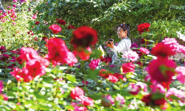 5月21日,太原市公园服务中心(街心公园)珠林园内,2.5万余株月季争相绽放,吸引了众多游客。太原市公园服务中心(街心公园)第十届月季文化周将于5月23日至6月3日在珠林园举办。牛利敏 摄