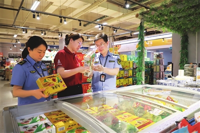 5月21日,杏花岭区市场监督管理局鼓楼市场监管所走进商场开展食品安全专项检查。执法人员对食品来源、质量检验、标签标识等方面展开细致排查,确保市民能够吃到安全放心的食品。张昊宇 摄