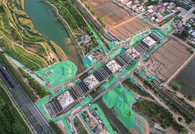 行走在老龙头生态治理工程三期项目的施工现场,水利工程的巧思在碧波中渐次舒展。56米长的一号跌水堰宛如巨型琴键,汛期时既能奏响泄洪的雄浑乐章,枯水季又化作层层叠瀑,与西侧的鱼鳞坝共谱水韵交响,形成天然的湿地舞台。在这里,水生植物在浅滩摇曳生姿,吸附污染物的根系编织成看不见的净化网络,将“水质好起来”的承诺沉淀为澄澈的现实。