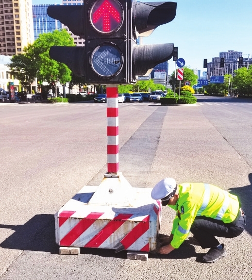 本报讯 为保障道路交通安全畅通,交警小店一大队民警持续加强路面巡逻管控,近日,交警小店一大队四中队民警巡逻至长治路龙城北街口时,发现因前一日大风天气,放置在路口的太阳能信号灯发生了移位、方向指示颠倒,给过往车辆和行人带来安全隐患。