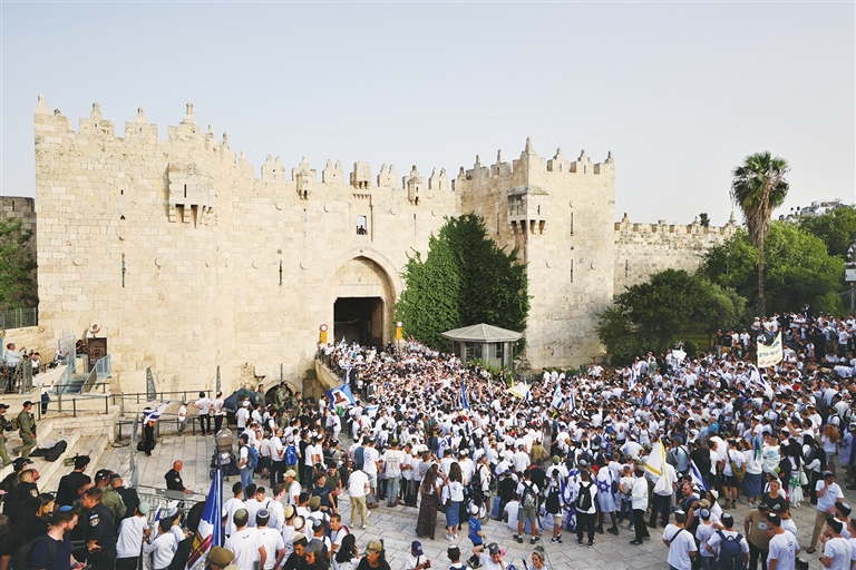 五月二十六日,以色列极右翼人士在耶路撒冷老城参加“耶路撒冷日”游行。大量以色列极右翼人士二十六日举行游行纪念“耶路撒冷日”,并与巴勒斯坦人多次爆发肢体冲突。“耶路撒冷日”是为纪念以色列在一九六七年第三次中东战争中夺得耶路撒冷全城控制权。新华社发