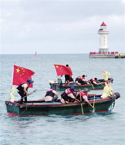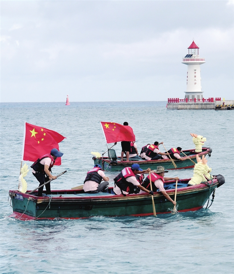 5月29日,在海南省三沙市永兴岛,参赛选手在竞渡活动中奋勇争先。