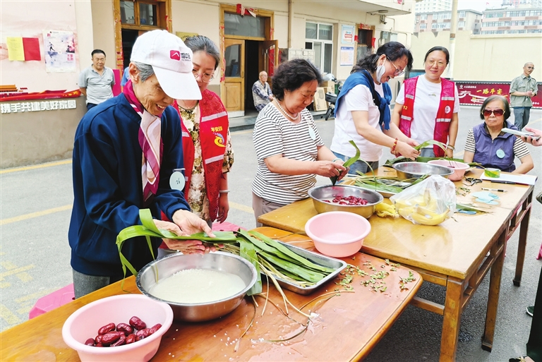 五月三十日,迎泽区桥东街道双塔寺街三社区书苑小区以“品味端午,传承文明”为主题,组织居民进行包粽子比赛、趣味游戏等。郭苑甫 张丽娜 摄影报道
