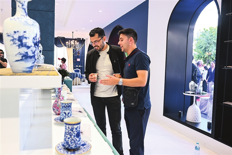 5月31日,在土耳其伊斯坦布尔,顾客在景德镇陶瓷官方旗舰店内查看中国瓷器。当日,景德镇陶瓷官方旗舰店在土耳其最大城市伊斯坦布尔开业迎客。此次开业的伊斯坦布尔店是景德镇陶瓷官方旗舰店的第39家门店,也是继迪拜之后第二家海外门店。新华社记者 刘 磊 摄