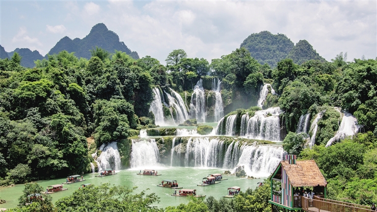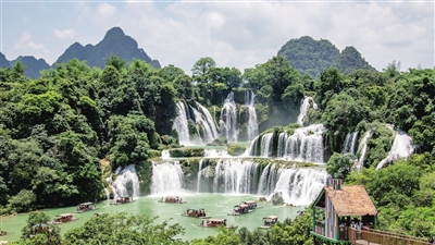 6月1日,游客在广西崇左市大新县德天瀑布景区游览。新华社发(赵京武 摄)