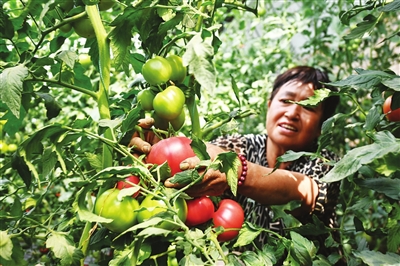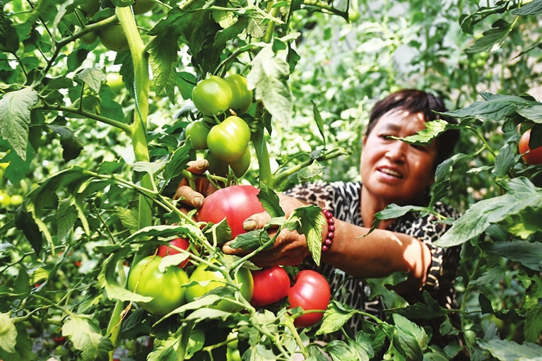 6月3日,太原市小店区刘家堡乡东柳林村番茄种植温室大棚内,村民正在采摘成熟的西红柿。近年来,小店区持续推进“一村一策”机制体系,大力发展特色农业和乡村采摘游,为乡村振兴注入新动力。郭苑甫 摄
