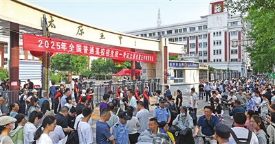 上图:6月7日上午,在太原市第五中学校考点,考生轻松步入考场。
